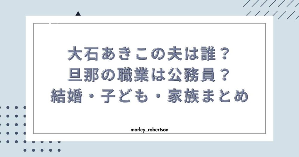 この記事では、大石さんの結婚相手(夫)や子ども、家族構成について、現在公表されている情報を中心に、分かりやすく整理してご紹介します。